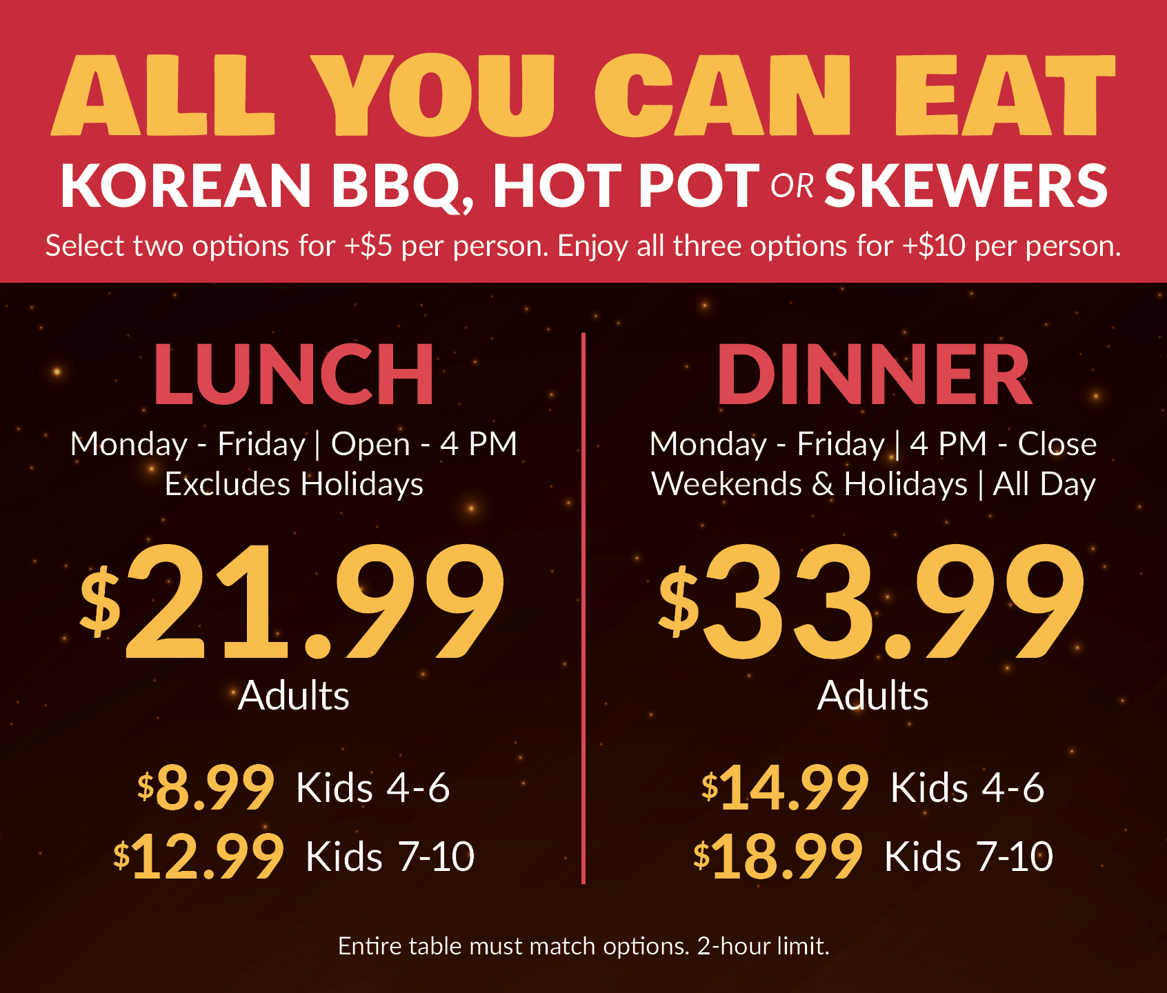 SUNDAY – THURSDAY: 12:00 PM – 10:30 PM
